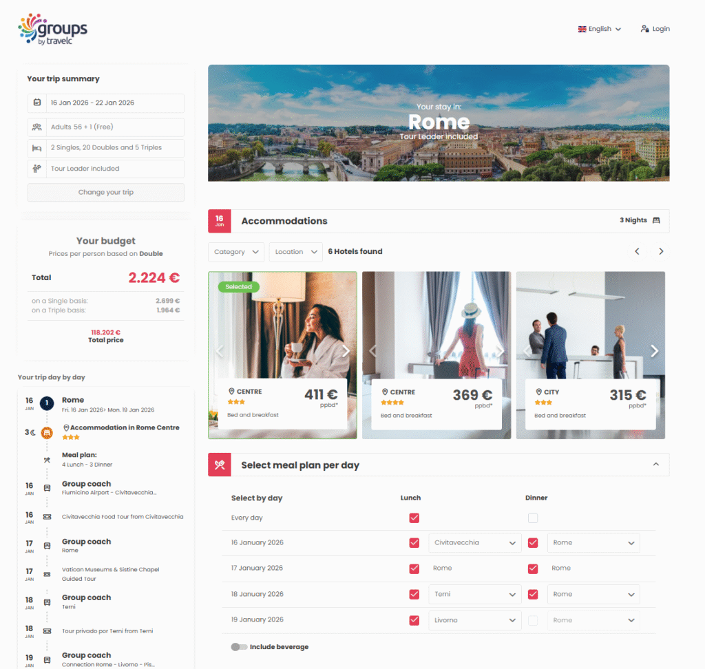 Tailor-made group trips involve multiple suppliers, cities, schedules, restrictions, dynamic rooming, and last-minute changes. Until now, the industry relied on spreadsheets, emails, and phone calls. The new Group Engine unifies it all: